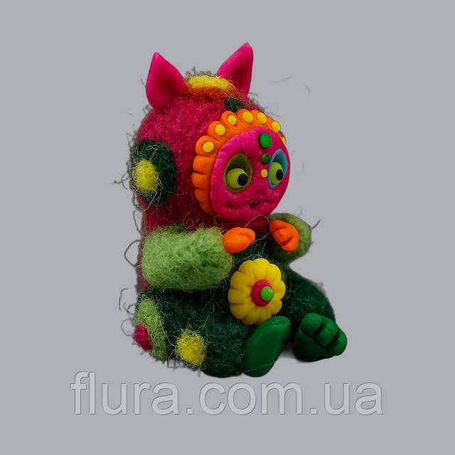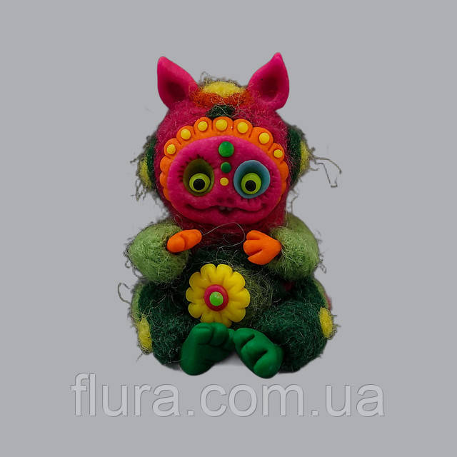 Фігурка з вовни та полімерної глини ручної роботи декоративна / Валяна іграшка талісман для дому